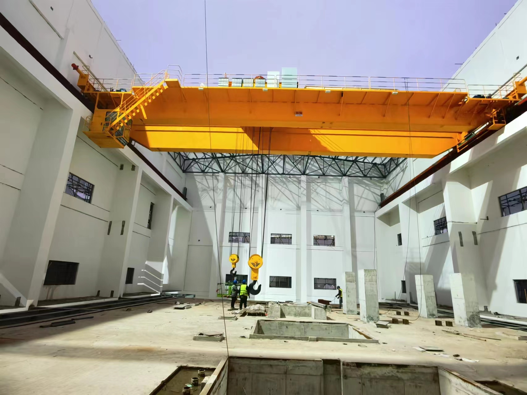 QE型通用桥式起重机依据GB/T14405-2011标准所设计、制造.该型号起重机是在QD型起重机基础上设有两台起重小车,,,,,,,,其可以单独事情,,,,,,,,也可以联台行动,,,,,,,,适用于工矿企业车间及铁路、口岸码头等货场吊运长件物品。。。。。。