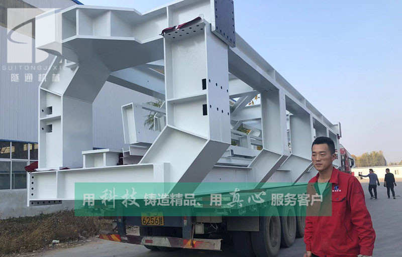 使用盾构机挖掘隧道时,,,,,,,盾构机的主机用于在隧道前方挖掘掌子面上的土壤,,,,,,,盾构机主机的后端牵拉有后配套拖车,,,,,,,后配套拖车包括多节车厢,,,,,,,每一节车厢称为一个台车,,,,,,,盾构机后配套拖车用于承载盾构机主机的控制系统等配套装备,,,,,,,盾构机后配套拖车设有“门”字形通道,,,,,,,用于供沿隧道通行的编组列车穿过“门”字形通道直接抵达盾构机主机的后端,,,,,,,编组列车能将盾构机主机挖掘隧道时爆发的泥浆、沙砾、卵石等种种类型的渣土运送到隧道外,,,,,,,并可兼顾把管片、背衬浆料等种种质料运进隧道内。。。。。。